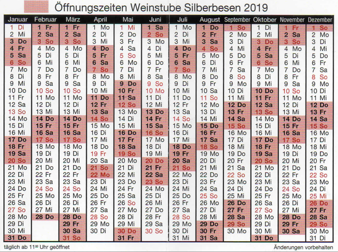 Dennoch haben wir für Sie an den rot markierten Tagen geöffnet!